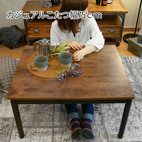 ヴィンテージ調こたつ 正方形 68cm 本体 単品【送料無料】 フラットヒーター こたつテーブル おしゃれ リバーシブル天板 カジュアルこたつ 小さいこたつ 一人用こたつ 一人暮らし