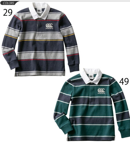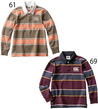 ラガーシャツ 長袖 ジュニア キッズ 男の子 女の子 カンタベリー CANTERBURY 子供服 120cm 130cm 140cm ラグビー ポロシャツ カットソー トップス 太ボーダー柄 ロゴ刺繍 肉厚 スポーツ カジュアル/RAJ49755